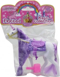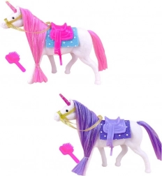 Sjov enhjørning til børn, der giver timevis af leg og kreativitet. Denne legetøjshest inkluderer en børste, trense, sadel og sadelunderlag.