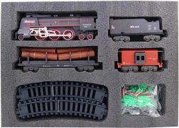 Legeoplevelsen med dette togsæt forstærkes af dampeffekten, der kommer fra skorstenen og lokomotivets chassis. Toget leveres med let at samle skinner, hvilket gør det nemt at opsætte en bane på 92,5 x 92 cm.
