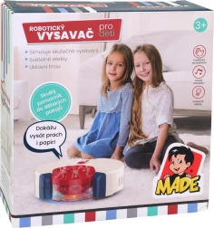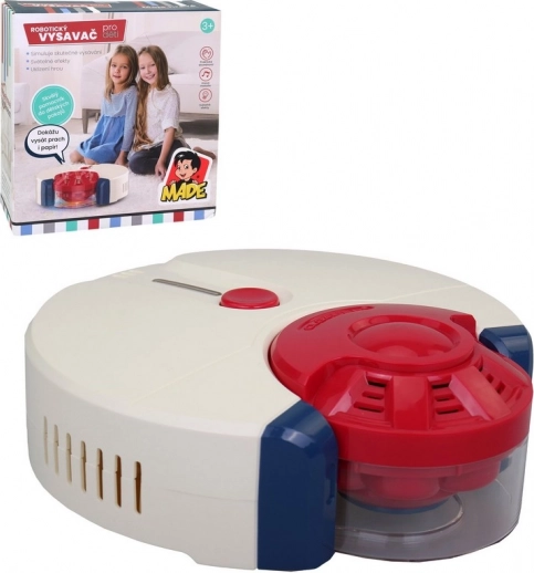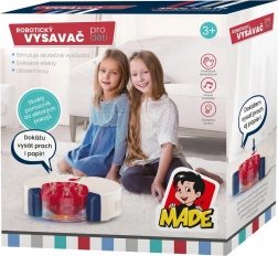 Denne robotiske børnestøvsuger tilbyder en moderne støvsugningsmetode for små børn. Støvsugeren bevæger sig, lyser op og afspiller realistiske lyde, hvilket bringer glæde til enhver leg.