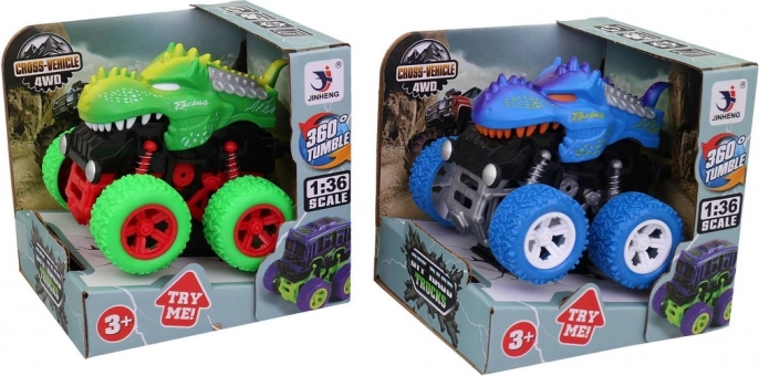 Bil med store hjul i dinosaurform tilbyder et friskt og farverigt design, der får ethvert barns ansigt til at lyse op. Vælg din yndlingsfarve og nyd timevis af eventyr, mens du overvinder forhindringer.