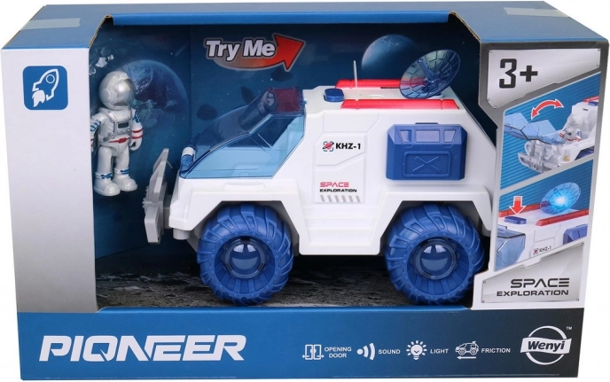 Rumfartøjet er lavet af plastmateriale, som er sikkert og holdbart for børn. Legetøjet er tilpasset drenge og vil fascinere dem med sine funktioner og sit design. Bilens mål er 17,3 x 10,8 x 10,8 cm, hvilket er ideelt til små hænder.