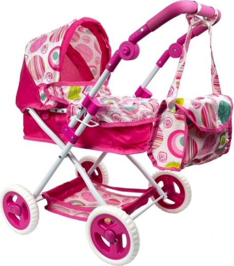 Stilfuld og moderne dukkevogn tilbyder en komfortabel plads til din dukke på gåture. Den er udstyret med en taske, der kan hænges på styret, og har et justerbart håndtag for nem styring.