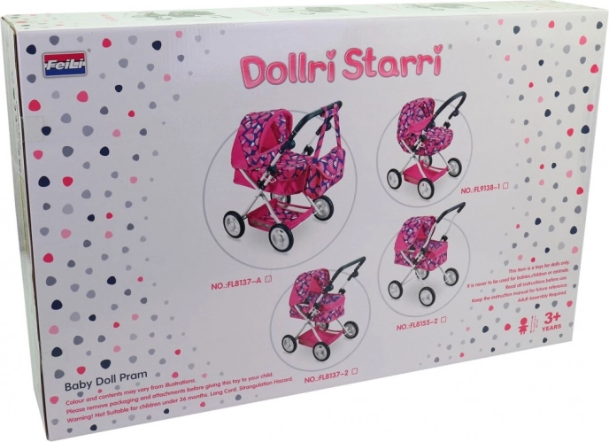 Stilfuld dukkevogn med taske, moderne design, justerbart håndtag, ideel til børn fra 3 år.