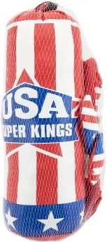 Dette boksesæt til børn er et godt valg til de første skridt ind i boksens verden. Takket være de mindre dimensioner passer det både på børneværelset og til hjemmetræning. Det farverige motiv med det amerikanske flag fanger børns opmærksomhed og motiverer til bevægelse.