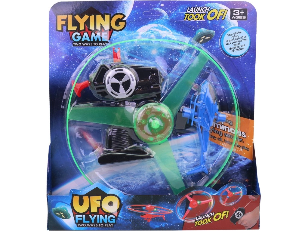 Den flyvende tallerken er det ideelle legetøj til børn fra 3 år. Dette sjove legetøj med en diameter på 25 cm er lavet af kvalitetsplast og leveres på kort med batterier inkluderet.