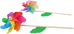 Trævindmølle med en højde på 18 cm er ideel til børn fra 3 år. Dette produkt giver sjov og nem håndtering takket være plast og træpind.