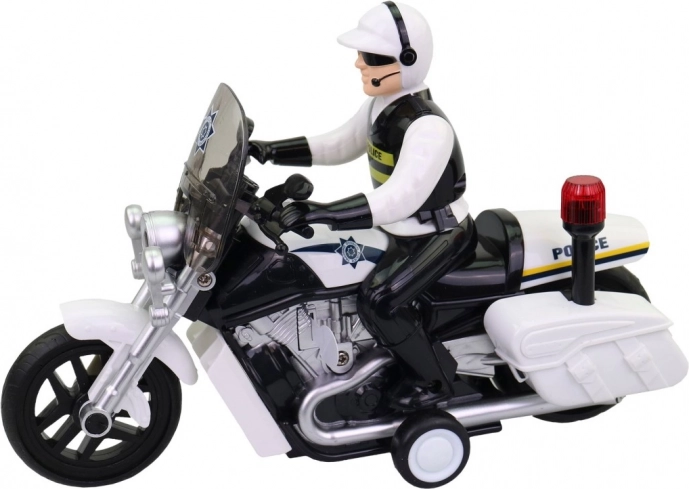 Politimotorcykel med lys og lyd til børn 3+ med realistiske effekter, friktionsmotor og batterier inkluderet.