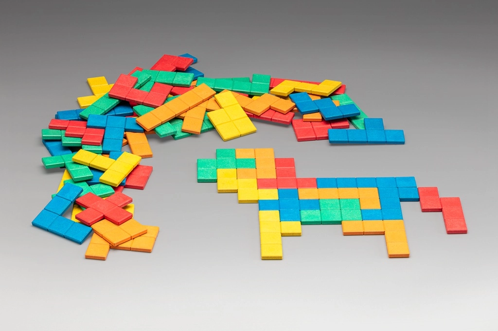 Æske fuld af farverigt pentomino til udvikling af børns kreativitet og rumlig tænkning. Indeholder 60 brikker fremstillet af 100% genbrugstræ, PEFC-certificeret, inklusive robust kartonemballage.