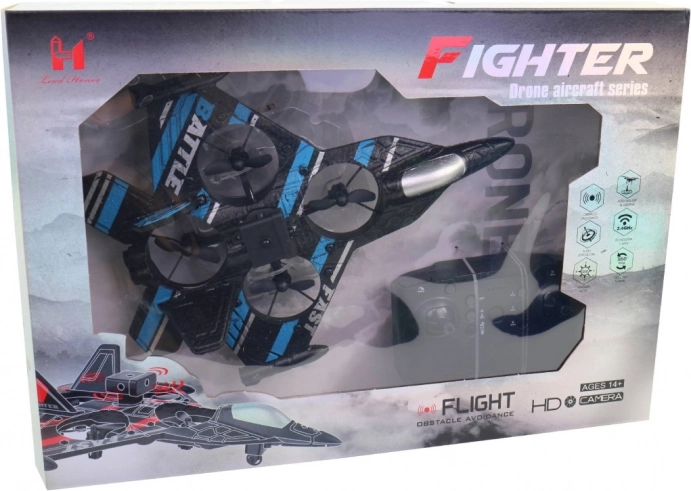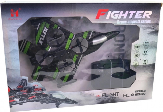Fjernstyret jagerfly 2,4 GHz med automatisk landing, 360° loops og forhindringsundgåelse. Ideelt for flyentusiaster.