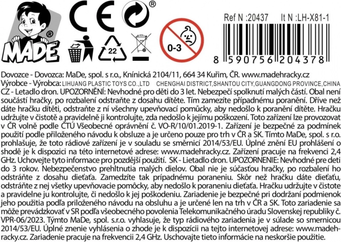 Hastighedskontrol gør det muligt for personer over 14 år at afprøve deres pilotfærdigheder uden behov for kamera. Flyet er robust takket være plastmaterialet, som sikrer lang levetid.