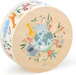 Vilac Træ Cajón Dyr i verden er et smukt illustreret musikinstrument for børn, der understøtter udvikling af finmotorik, koordination og auditiv opfattelse. Denne inspirerende cajón bringer kærlighed til musik ind i børns verden og opfordrer dem naturligt til at udforske rytmer.