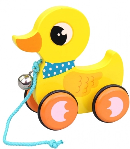 Trækkædeand er et smukt legetøj, der takket være klokken omkring halsen laver en blid klang når den trækkes, hvilket vil fascinere ethvert barn.