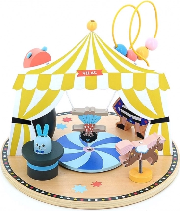 Oplev cirkussets magiske verden med den motoriske labyrint fra Vilac, designet af illustratoren Michelle Carlslund. Legetøjet byder på seks fascinerende aktiviteter til at udvikle børns fantasi og finmotorik.