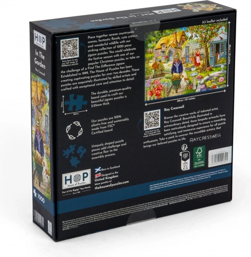 Puzzle HOP I haven med 1000 brikker, unikke former, inkluderer A3-plakat. Mål: 69 x 48 cm.