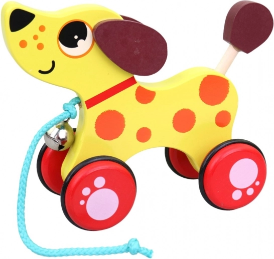 Denne charmerende trækhund byder ikke kun på farverig variation, men også et interaktivt element i form af en klokke, der afgiver en mild lyd, når den bevæges. Sjov for børn er dermed garanteret!