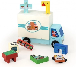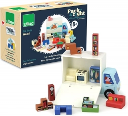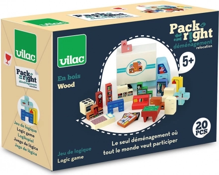 Det træbaserede logikspil Pak det rigtigt fra Vilac byder på en klog udfordring for børn, der kan lide at finde ud af, hvordan man læsser møbler korrekt i en flyttebil. Spillet, inspireret af illustrationer af Ingela P. Arrhenius, hjælper med at udvikle logisk tænkning, rumlig orientering og finmotorik. Børn har 19 stykker møbler til rådighed, som skal placeres i bilen.