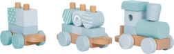 Sjovt trælegetøjstog i pasteltoner med fine motiver, der fremmer kreativitet og udvikler finmotorik hos børn. Velegnet til fri leg og som en smuk dekoration på børneværelset.