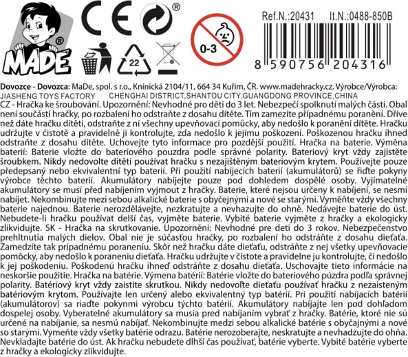 Denne gravko drives af 3 AG13-batterier, som er inkluderet i pakken, så børnene kan begynde at bruge den med det samme. Legetøjets mål er 24 x 11 x 13 cm, hvilket gør det til et perfekt supplement til børneværelset.