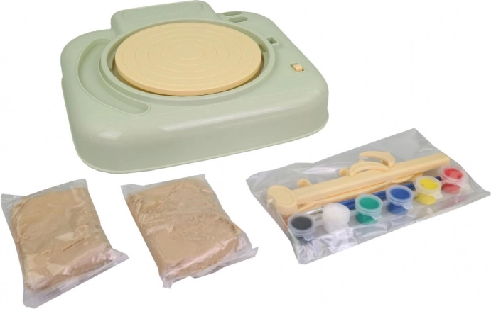 For at drejebænken fungerer korrekt kræves 4 AA-batterier, som ikke medfølger. Dens design og muligheder vækker børns lyst til at skabe og eksperimentere med ler.