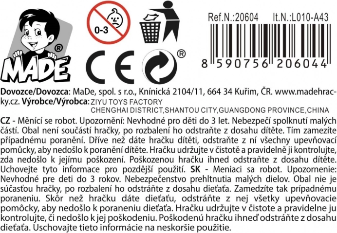 Denne transformerbare robot til bil er ideel til børn over 3 år. Den er lavet af høj kvalitet plast, som sikrer lang levetid og modstandsdygtighed mod skader. Legetøjet har en lille størrelse på 6,5x3,5x6 cm, hvilket gør det nemt at transportere og opbevare. Perfekt valg for drenge, der elsker eventyr og bil-legetøj.