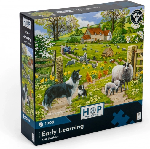 Puslespillet Tidlig Læring med 1000 brikker fra House of Puzzles med unikke brikkeformer og A3-plakat.