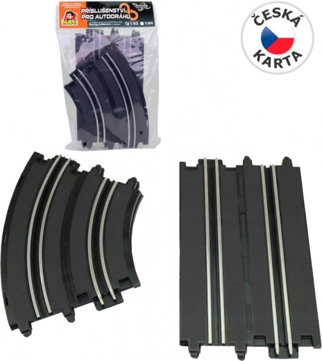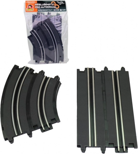 Reservedele til bilbanen Racing collection i skala 1:43. Pakken indeholder fire stykker bane af kvalitetsplast, ideelle til at supplere din bilbane og øge legen.