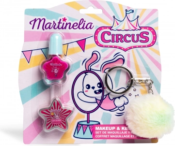 Det festlige Martinelia Circus-sæt indeholder neglelak og lipgloss med en legesyg, pelsagtig vedhængsnøglering – perfekt til små modeentusiaster.