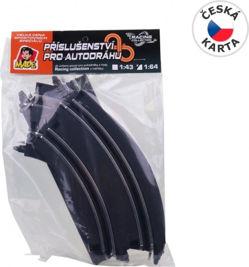 Udvid mulighederne for din racerbane med disse præcise reservedele, designet udelukkende til racerbanen fra serien Racing Collection i skala 1:64. Denne pakke indeholder fire stykker bane, som let kan udskiftes takket være kompatibilitet og det kvalitetsrige plastmateriale.