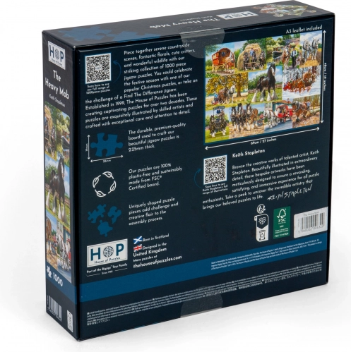 Puslespil 1000 brikker Tahouni fra House of Puzzles med unikke former og en A3-størrelse plakat.