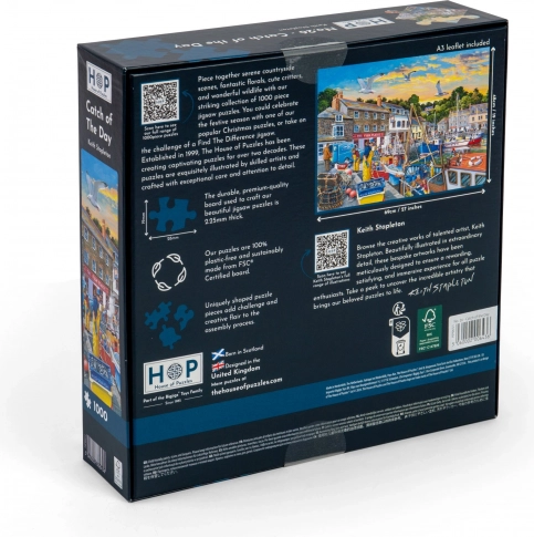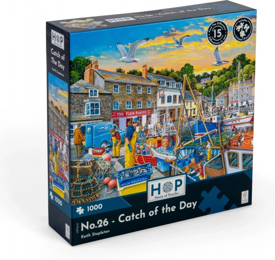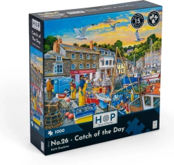 Puslespillet Dagens Fangst tilbyder unikke og uregelmæssige brikformer, som øger både underholdning og udfordring under lægningen. Ideelt for puslespilsentusiaster!
