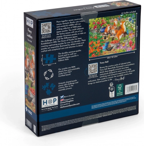 At lægge puslespillet Rævedamer er ikke kun en sjov aktivitet, men også en fantastisk måde at slappe af på. De uregelmæssige brikformer gør hver brik unik og gør puslespillet mere interessant. Designet viser et fortryllende motiv med rævedamer, som tiltrækker både børn og voksne puslespilsentusiaster. Pakken indeholder også en plakat i A3-størrelse, som kan bruges som en glimrende vejledning under lægningen.