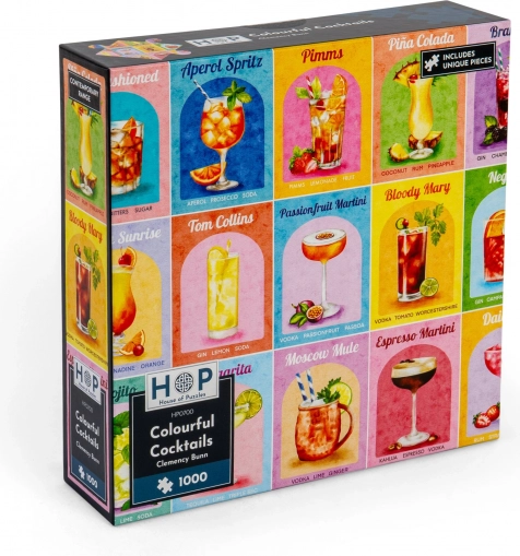 Saml et enestående puslespil med motivet Farverige cocktails fra den anerkendte virksomhed House of Puzzles. Dette puslespil tilbyder: