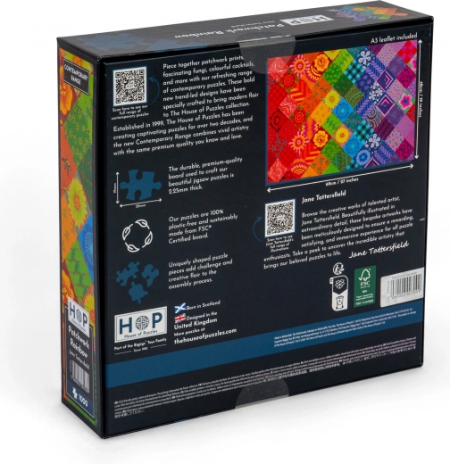 Puslespil Patchwork-regnbue fra House of Puzzles tilbyder en unik puslespilsoplevelse takket være sine særlige og uregelmæssige brikformer. Hver brik er unik og vil være et fantastisk supplement til din samling.