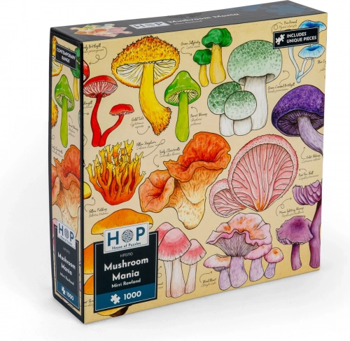 Puslespil Svampe-mani med 1000 brikker tilbyder unikke former og lærende elementer, ideelt til dem der elsker at lægge puslespil.