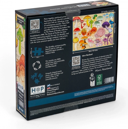 Takket være svampenavnene på engelsk og latin tilfører puslespillet også et lærende element. Det færdige motiv måler cirka 69 x 48 cm.