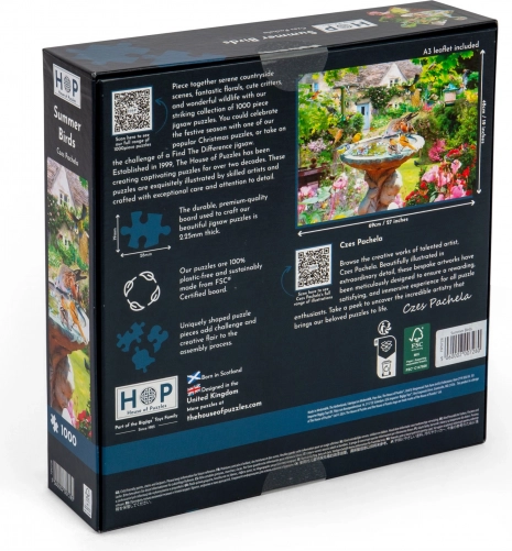Berig din fritid med puslespillet Sommerfugle, som giver et fascinerende blik på sommerlige scener fyldt med farvestrålende fugle. Alle 1000 brikker er designet, så hver brik har en unik form, hvilket giver endnu et niveau af sværhedsgrad og tilfredsstillelse.