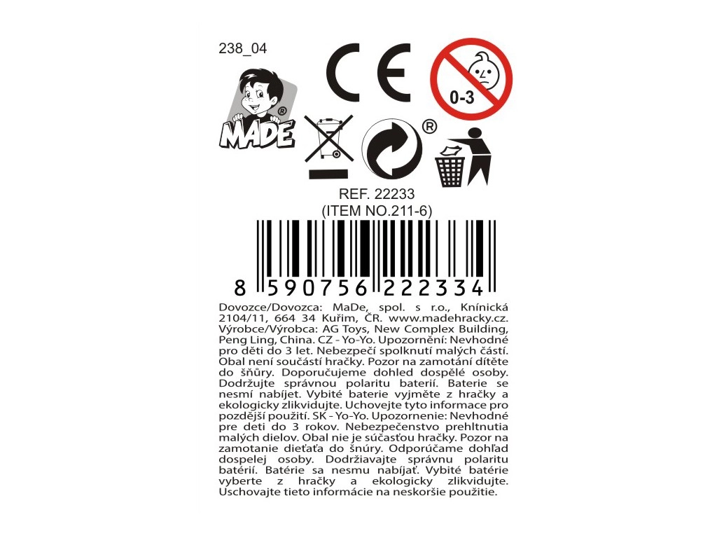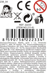 Pakken indeholder 3 AG13 batterier, så jo-jo er klar til brug med det samme. Jo-joen er nem at betjene og leveres i praktisk blisterpakning, hvilket letter håndtering og opbevaring.
