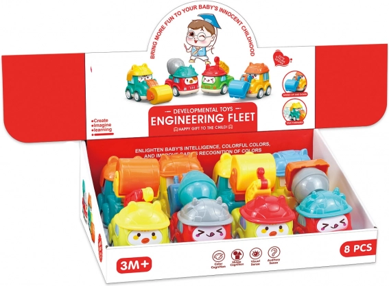 Byggekøretøj med friktionsmotor 8 cm - 4 varianter til sjov leg. Ideel til små bygmestre.