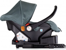 Nem installation med bilens 3-punktssele og brug udelukkende bagudvendt sikrer korrekt og sikker fastgørelse. Det praktiske justerbare håndtag gør det let at bære, gyngende base beroliger barnet uden for bilen, og aftagelig kaleche giver skygge og beskyttelse.