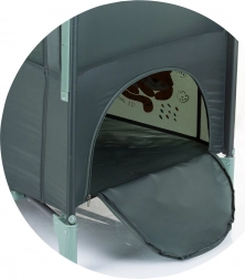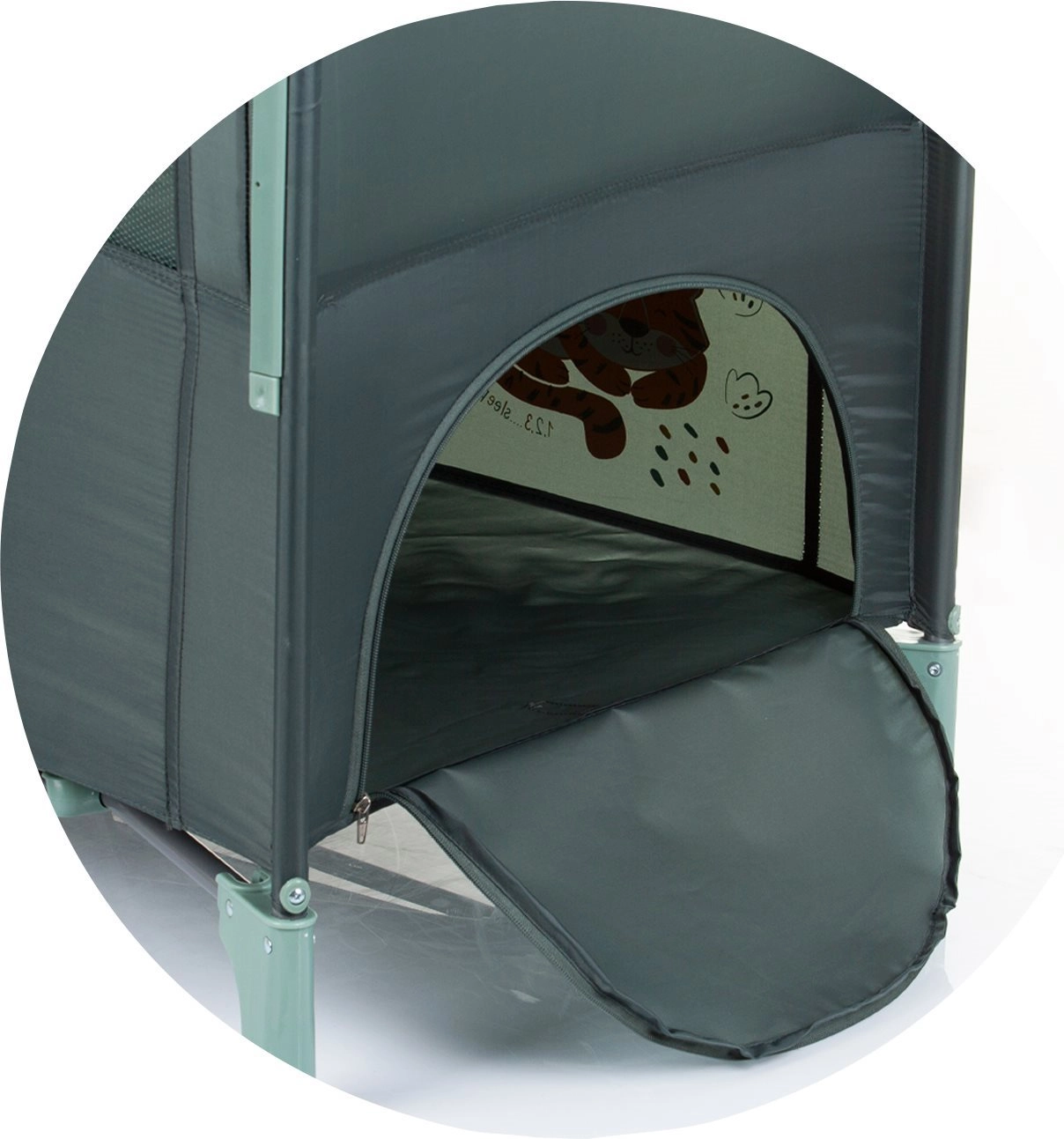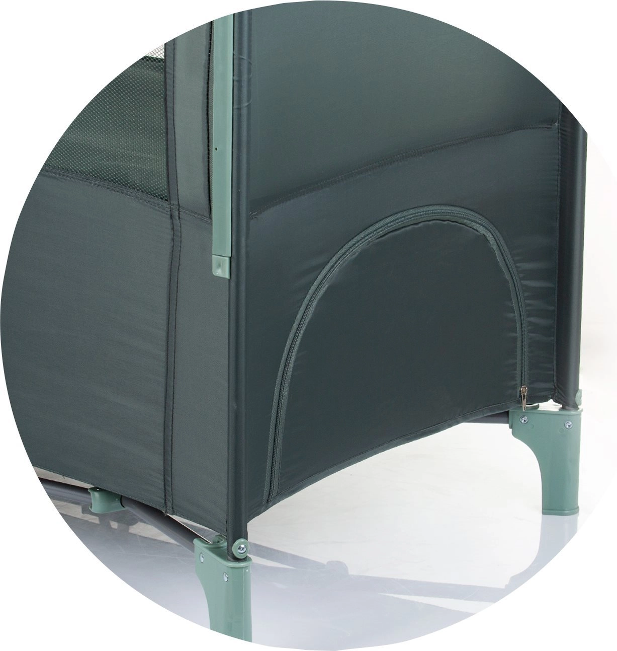Pakken indeholder en foldbar seng, madras, anden niveauindsats og en taske til transport og opbevaring. Produktet overholder den europæiske standard EN716-1, hvilket sikrer højeste niveau af sikkerhed og kvalitet.