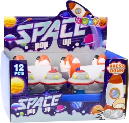 Dette springende rumskib giver børn sjov fyldt med bevægelse og lyseffekter. Bare tryk legetøjet ned fra toppen og stil det på en plan overflade – derefter springer det energisk op i luften og blinker med farvede lys.