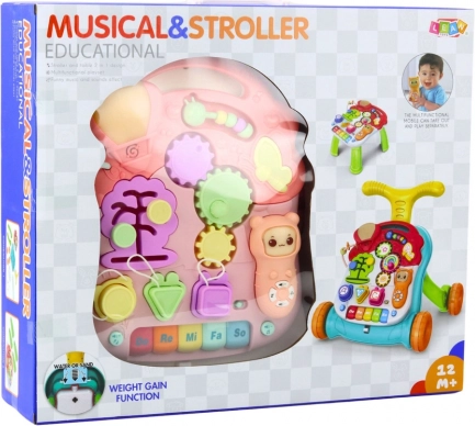 Den pædagogiske 5-i-1 gåvogn er et moderne legetøj, der støtter barnets udvikling allerede fra de første skridt. Dens stabile konstruktion, multifunktionelle panel og attraktive design gør den til et ideelt redskab til at udvikle dit barns motorik, kognition og sanser. Produktet kombinerer funktionerne fra en gåvogn, et læringspanel, en sorteringsboks, et lydpanel og et legebord, hvilket gør det til et alsidigt legetøj for børn.