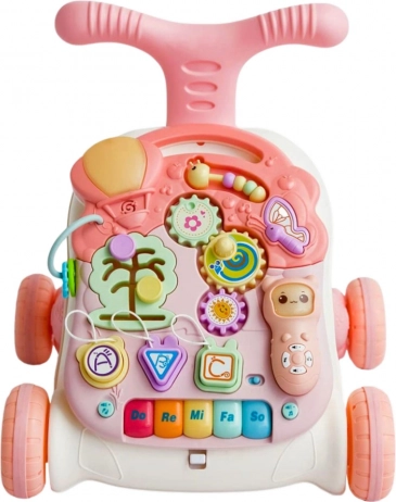 Pædagogisk gåvogn med interaktivt panel 5-i-1 pink