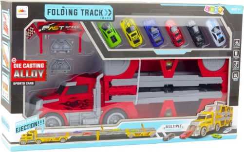Sammenklappelig lastbil med racerbane er det perfekte valg til små bilentusiaster. Dette innovative legetøj kombinerer en transportlastbil med en spændende racerbane. Når traileren foldes ud, fremkommer en over en meter lang bane til medrivende leg med de medfølgende små biler.
