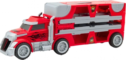 Når legen er slut, kan lastbilen foldes sammen – traileren fungerer også som opbevaringsplads til tilbehør og køretøjer, hvilket gør det nemt at holde orden på børneværelset. Sættet leveres i en farverig æske, ideel som gave.