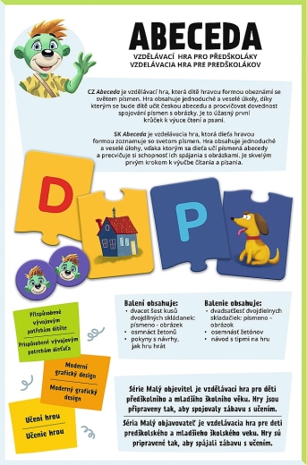 Læringsspil Lille Opdager: Alfabetet er en fantastisk måde at introducere børn til bogstavernes verden på en legende og sjov måde. Ved hjælp af enkle opgaver lærer børn det tjekkiske alfabet og øver at forbinde bogstaver med billeder.