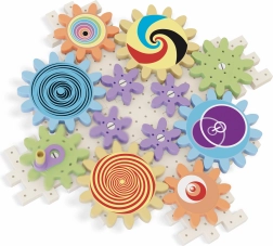 Byggesættet Kalejdoskopiske tandhjul giver børn mulighed for at skabe en imponerende kæde med tandhjul i forskellige størrelser, som drejer som på en karrusel. Det består af 38 dele, herunder perforerede plader, pinde og klistermærker med farvet tryk. Under legen lærer børn de grundlæggende principper for mekanik og opdager optiske effekter, som er virkelig magiske.