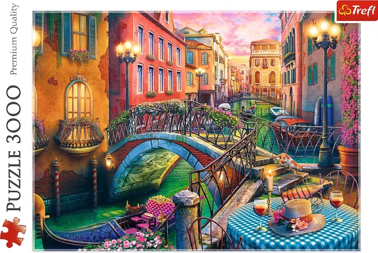 Puslespillet Aften i Venedig med 3000 brikker er en fantastisk måde at fordybe sig i Venedigs mystiske gyder, mens du slapper af og stimulerer hjernen.
