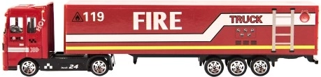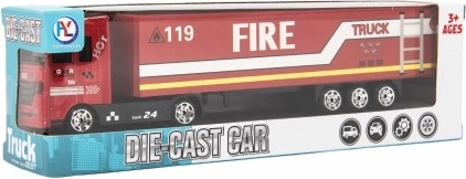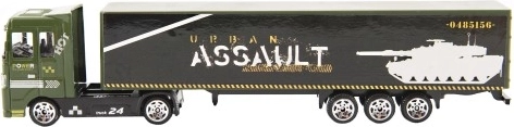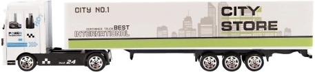 Lastbil med påhængsvogn 19 cm til børn fra 3 år. Metalførerhus, plastkarrosseri, friløb og 4 farvevarianter. Holdbar konstruktion til sjov leg.