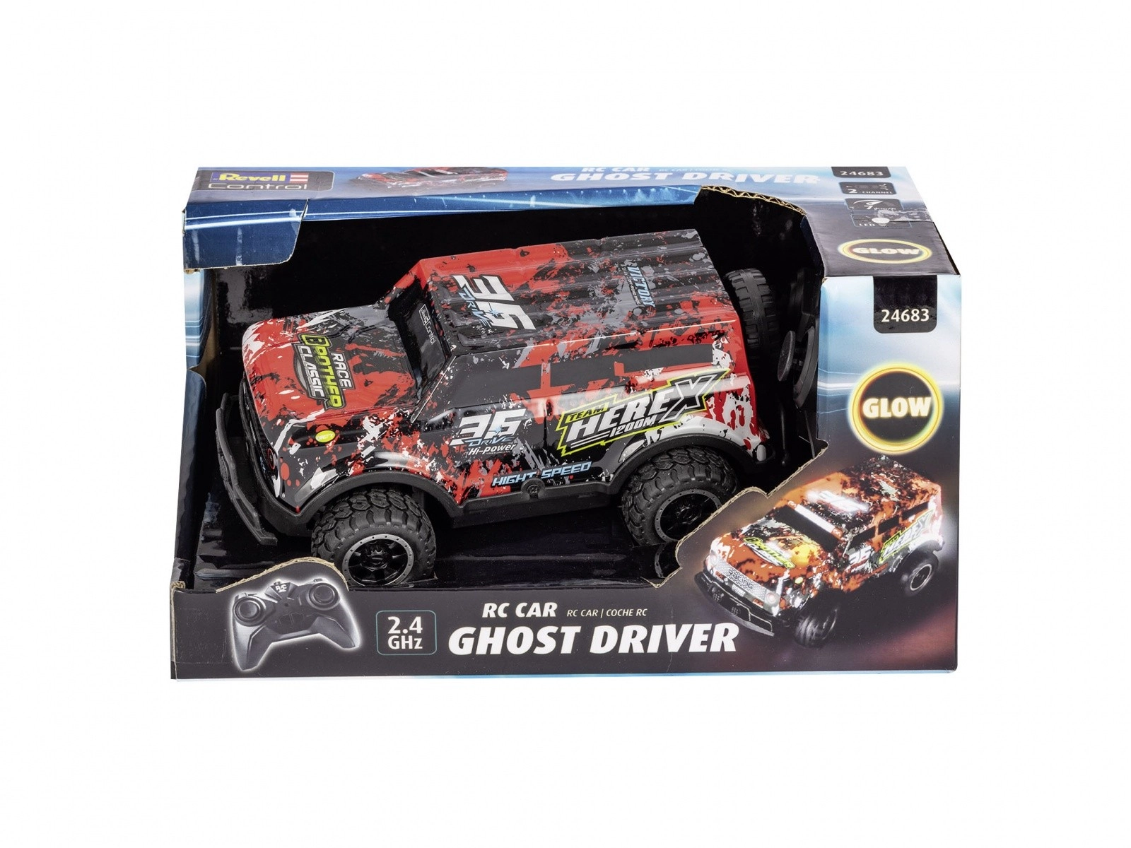 Oplev nattens spænding med Revell Control RC Bil Ghost Driver. Klar til din samling eller som den perfekte gave til RC-fans og kommende chauffører! Se i mørket og kør ræs!